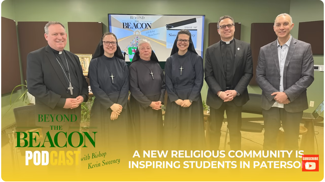 Sister Moira Debono, R.S.M., Paterson community’s local superior, and Msgr. Geno Sylva, rector of St. John’s and diocesan vicar for special projects, Sister Mary Mia Menke, R.S.M., and Sister Paul Miriam MacInnes, R.S.M. are hosted by Bishop Kevin J. Sweeney and Communications Director Jai Agnish.